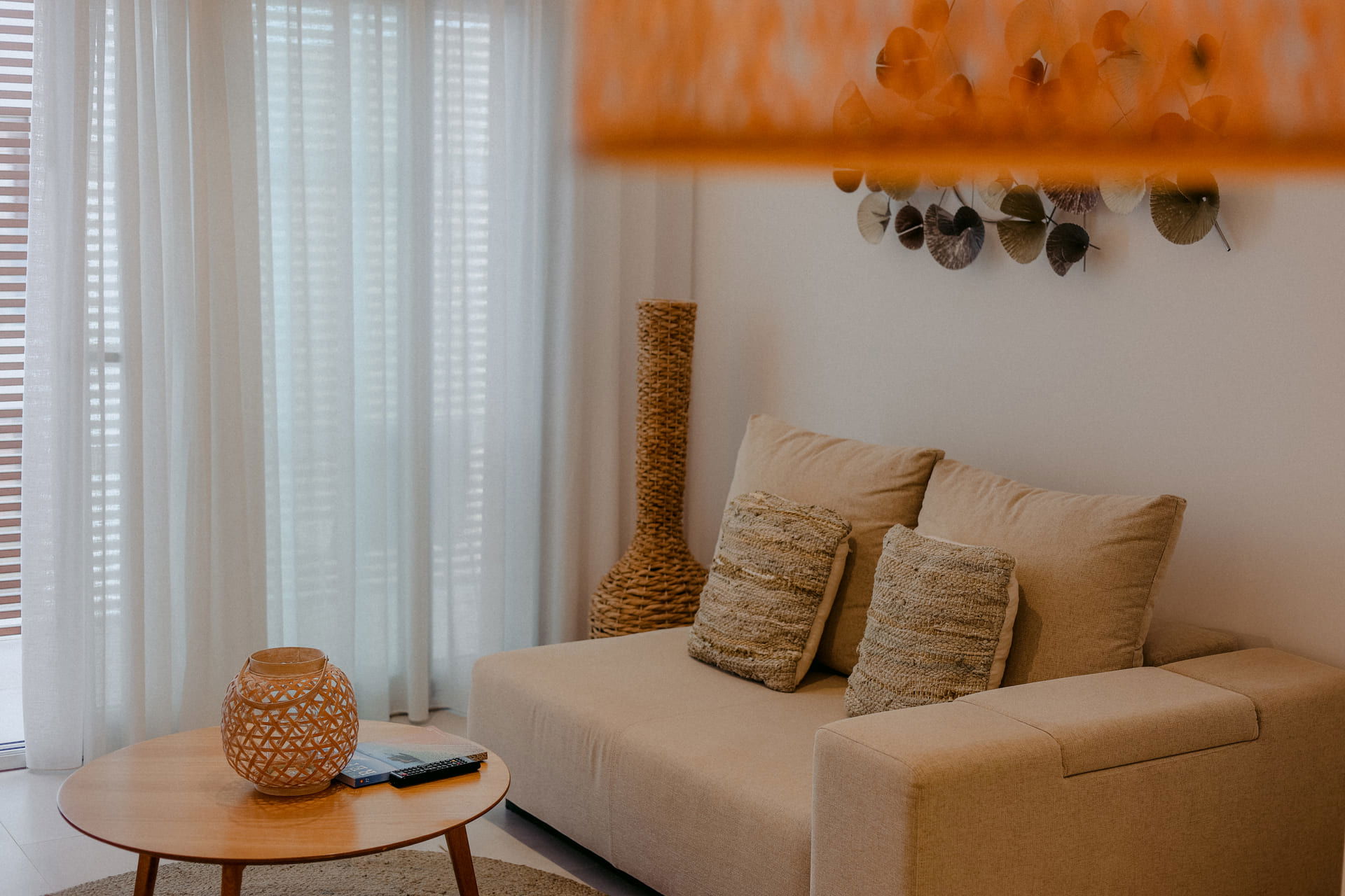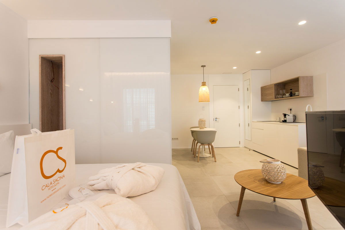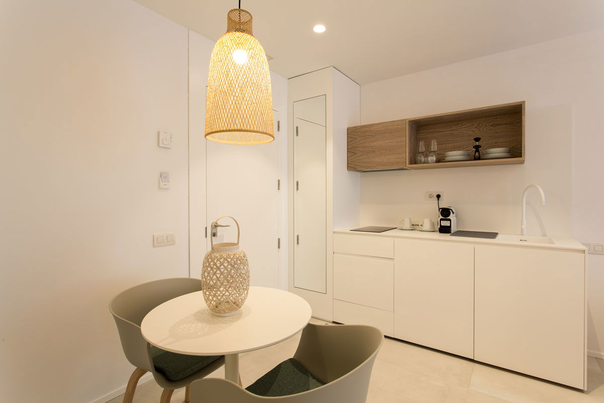 Los ambientes, amplios y diáfanos, cuentan con un set de venecianas móviles, con las que modular la luz y la brisa. La orientación y la sutileza del decorado, la orientación de las ventanas, y el confort de nuestra carta de almohadas perfumadas con aromaterapia, invitan a un sueño reparador inigualable en Formentera.